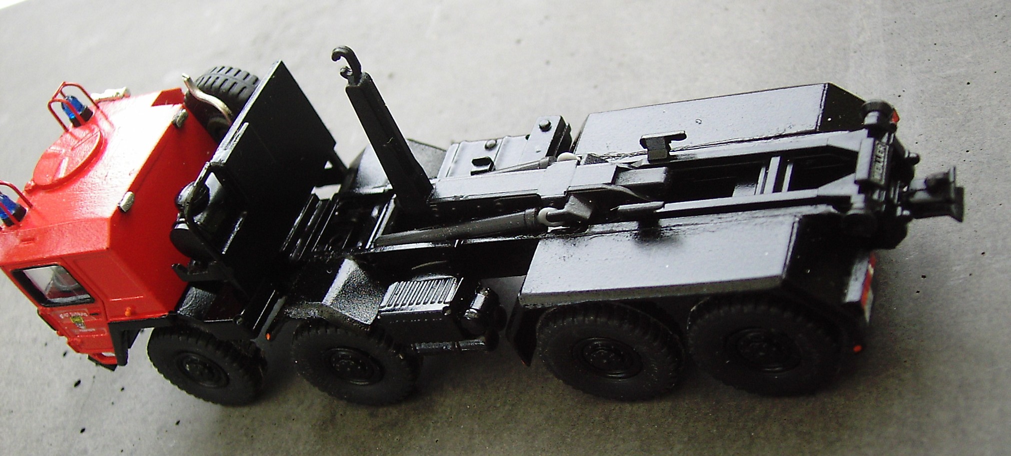 Das Fahrerhaus stammt von Herpa, das Fahrgestell von Roco und der >Rest aus der Bastelkiste und halt viel Eigenbau.