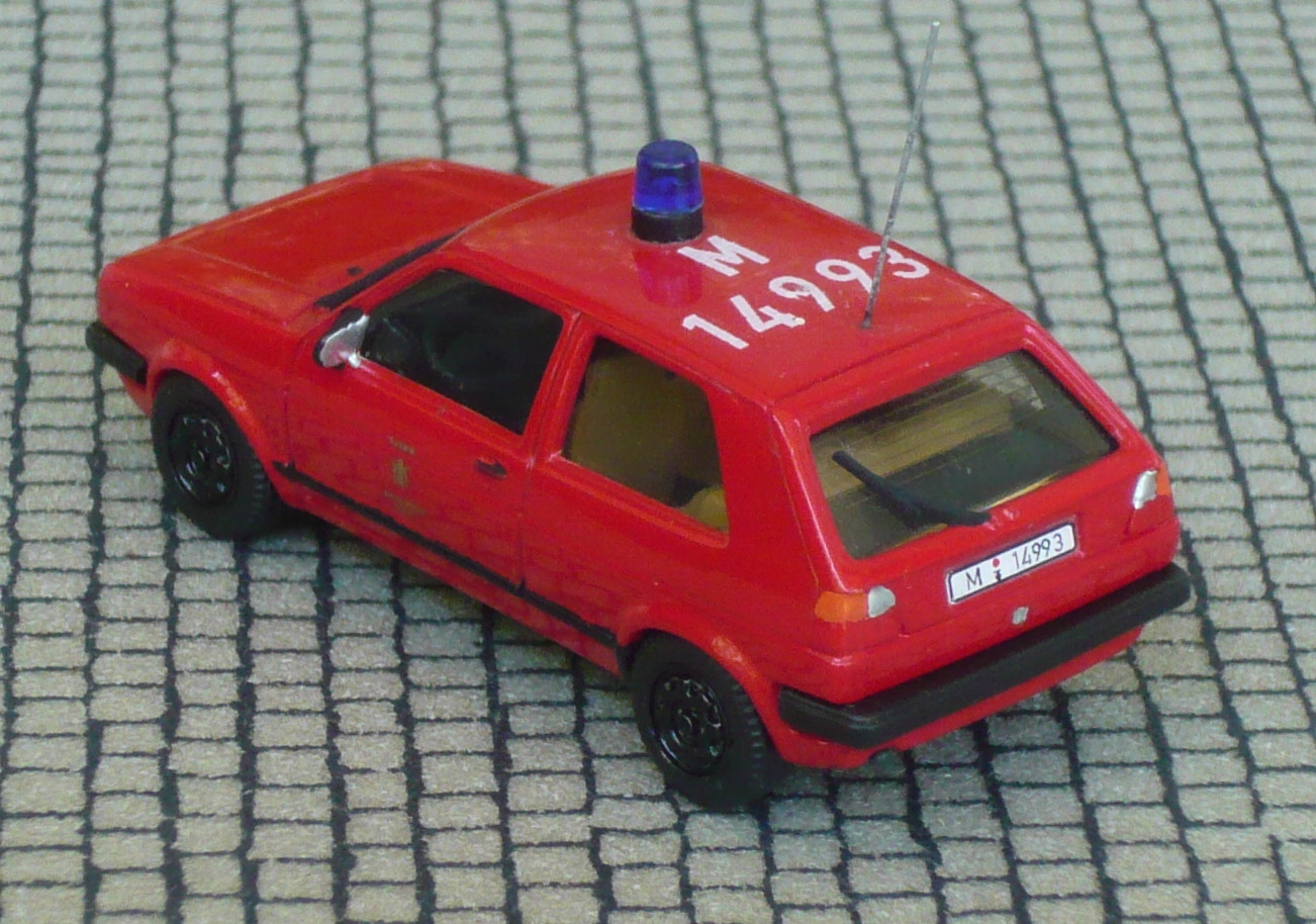 Hier habe ich mir einen der unzähligen VW Golf II der BF München herausgesucht, die in den unterschiedlichsten Varianten als Funkdienstwagen (FDW) ihren Dienst versehen haben bzw. vereinzelt scheinbar immer noch versehen.