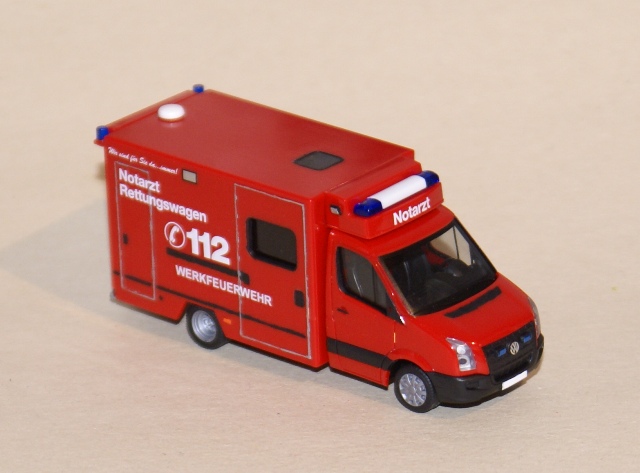 die Beschriftung "Notarzt" und "Rettungswagen" stammen von TL-Decals, ebenso die "112", der Schriftzug "Werkfeuerwehr" ist von DS-Design, habe ich dort für alle WF-Fhrzeuge einheitlich machen lassen! Irgendwan soll es al noch ein Logo geben, aber das muss ich erst noch entwerfen.