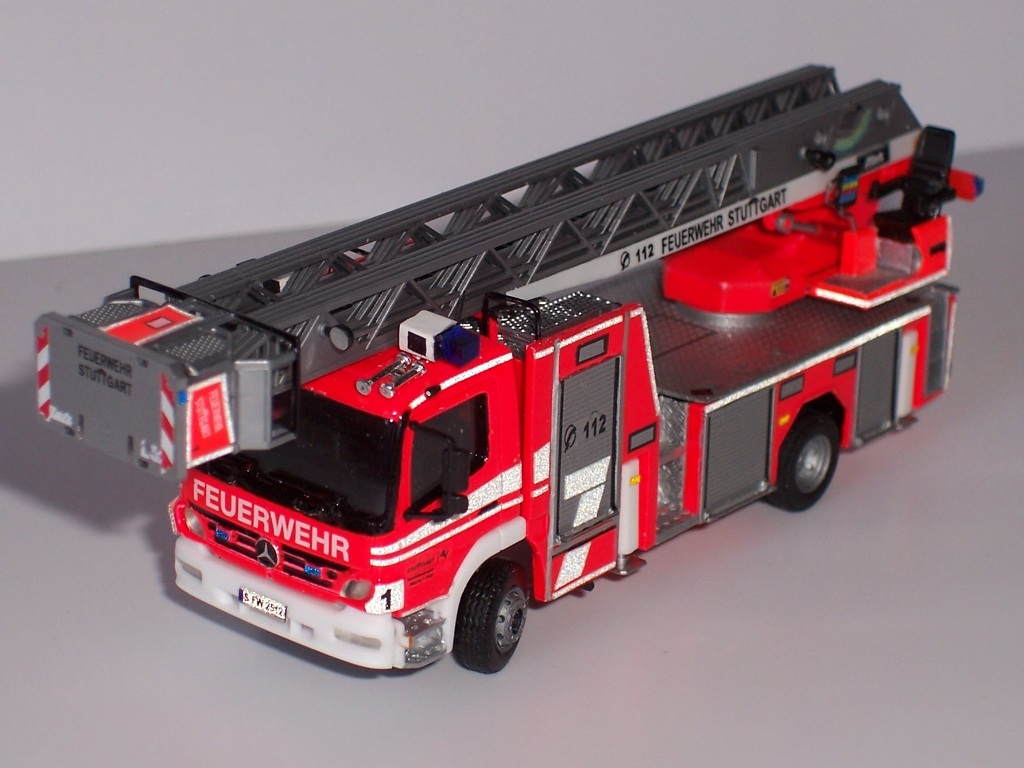 Das Grundmodell kommt von Wiking und wurde auf Herpa (mit Lenkung)umgebaut, zerlegt, grundiert und lackiert. Den Leiterpark habe ich direkt lackiert und leider sieht man das bei genauerer Betrachtung auch. Wie sagte ich doch so schön: "Ich kann alles, nur nicht mit der Spraydose lackieren!"