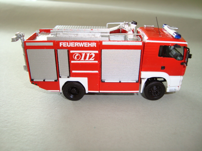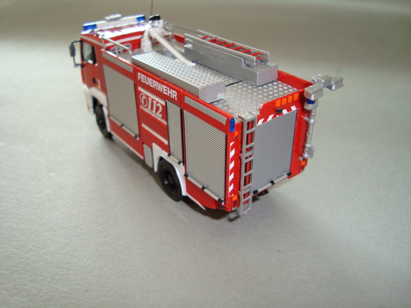 Der Aufbau ist an Dirk Wiesners Düsseldorfer Axor-TLF angelehnt, allerdings etwas vereinfacht aufgebaut: Die Anpassung der G1/G2 habe ich mir erspart und die Originalbreite des Herpa-TLF belassen.