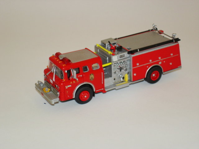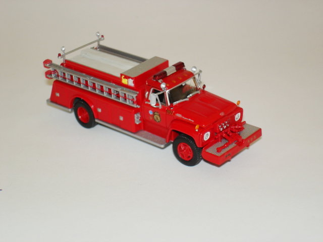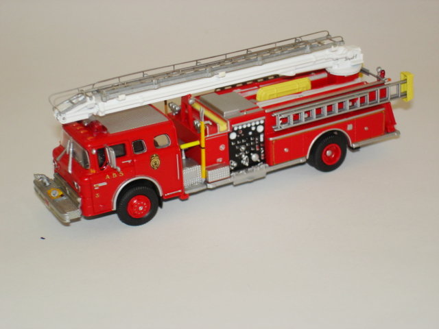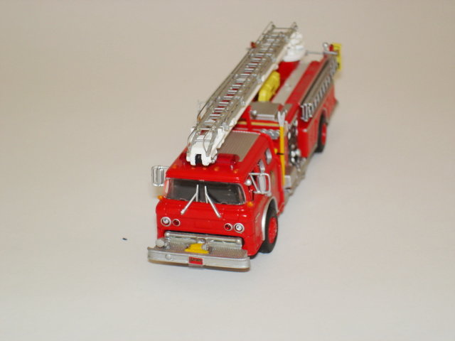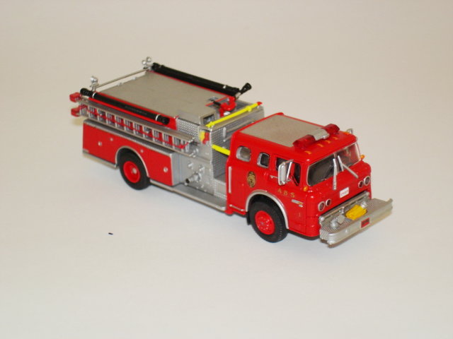 Es handelt sich hier um ein Modell der Firma Athearn, dass nicht lackiert wurde, sondern hier und da eine Detailbemalung erhielt. Eine Lackierung ist bei diesen Modellen nicht nötig, denn sie weisen diese von Hause aus schon auf. Lediglich die Frontstoßstange wurde gegen ein Resinteil mit Schlauchfach und Schlauchanschluss aus dem Sortiment von G. Pelz ersetzt. Die Decals stammen von Microscale/USA sowie Don Mills Modells/USA und wurden teilweise zusammengesetzt.