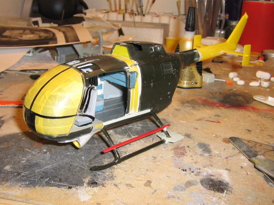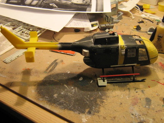 Weil es wie so oft keinen passenden Bausatz gab. Der kleine aber feine äußerliche Unterschied zwischen einer "normalen BO 105" und einer "BO 105 CBS S5" ist eine Verlängerung der Kabine um ~30cm im Original, sowie der Unterbringung eines dritten seitlichen Fensters.