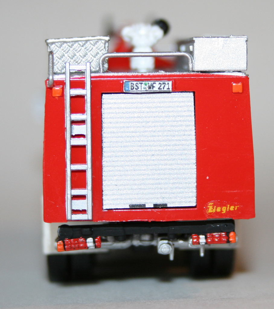 Eigenbau Pulver-Monitor und Schaum-Wasser-Monitor aus Preiser-Teilen. Der Lüfter wurde vor die Stossstange gebaut, ist ein Eigenbauprodukt aus diversen Teilen.