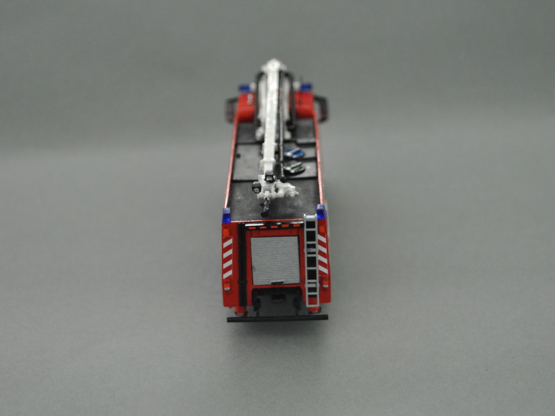 Das GTLF 38/50 wurde aus Fahrgestell und Kabine von Herpa, dem GTLF-Aufbau von Merlau, einem HRET-Löscharm, ebenfalls von Merlau und Kleinkram aus der Bastelkiste gebaut.