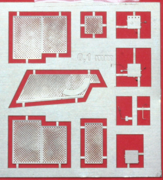 Stärke 0,1mm (rot) mit den Lochblechen für den Korb und die Verkleidung des Untersten Leiterteils